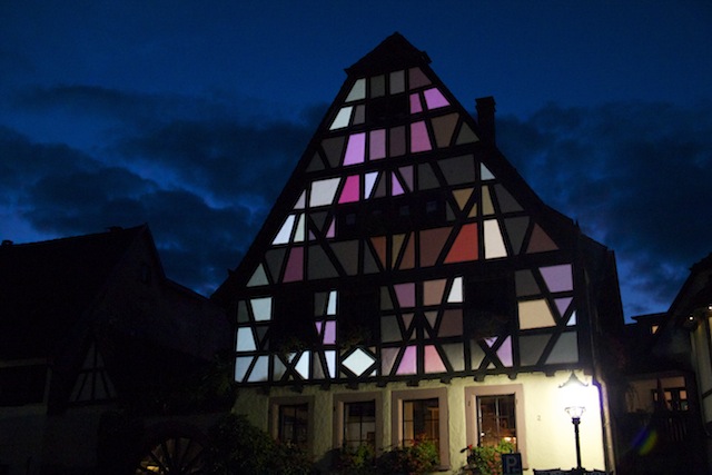 Das wechselnde Farbspiel der Installation »Lichtwerk« (2011) verbindet traditionelle Fachwerkarchitektur mit generativer Lichtkunst. Die Projektion verwandelt die Fassaden ausgewählter Fachwerkhäuser in ein gläsern anmutendes Kunstwerk. Die fachwerkeigenen Formen bleiben dabei vollständig erhalten, womit die Projektion der Struktur bei Nacht zu besonderer Leuchtkraft verhilft. Die von mir entwickelte Mapping-Software „Canvas Pro“ erlaubt die exakte Abbildung der Architektur. Das gezielte Timing und die bewußte Farbgestaltung wird durch generative Animationen und Methoden der Bildanalyse erreicht.